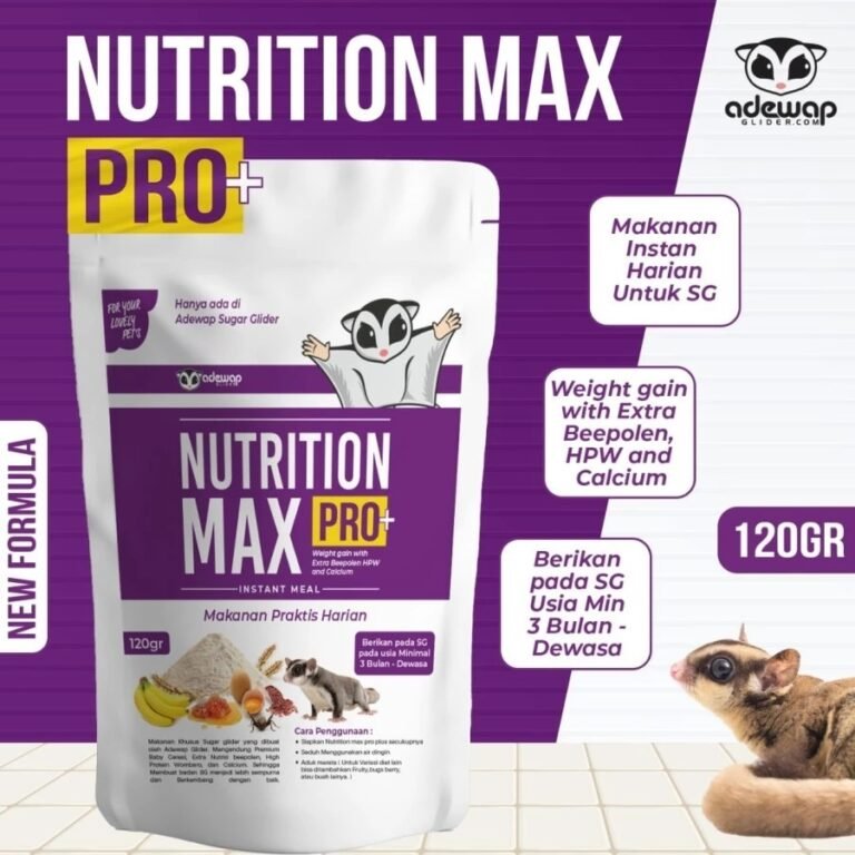 Makanan instan harian khusus sugar glider dengan formula baru yang lebih lengkap. Diperkaya Extra Beepolen, HPW, dan Calcium untuk mendukung pertumbuhan optimal dan menjaga berat badan ideal. Praktis disajikan, cocok untuk SG usia 3 bulan hingga dewasa.