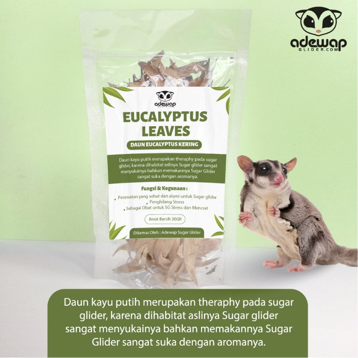 ADEWAP GLIDER Daun Eucalyptus Penghilang Stress Sugar Glider Daun Kering Penghilang Stress Hewan Peliharaan