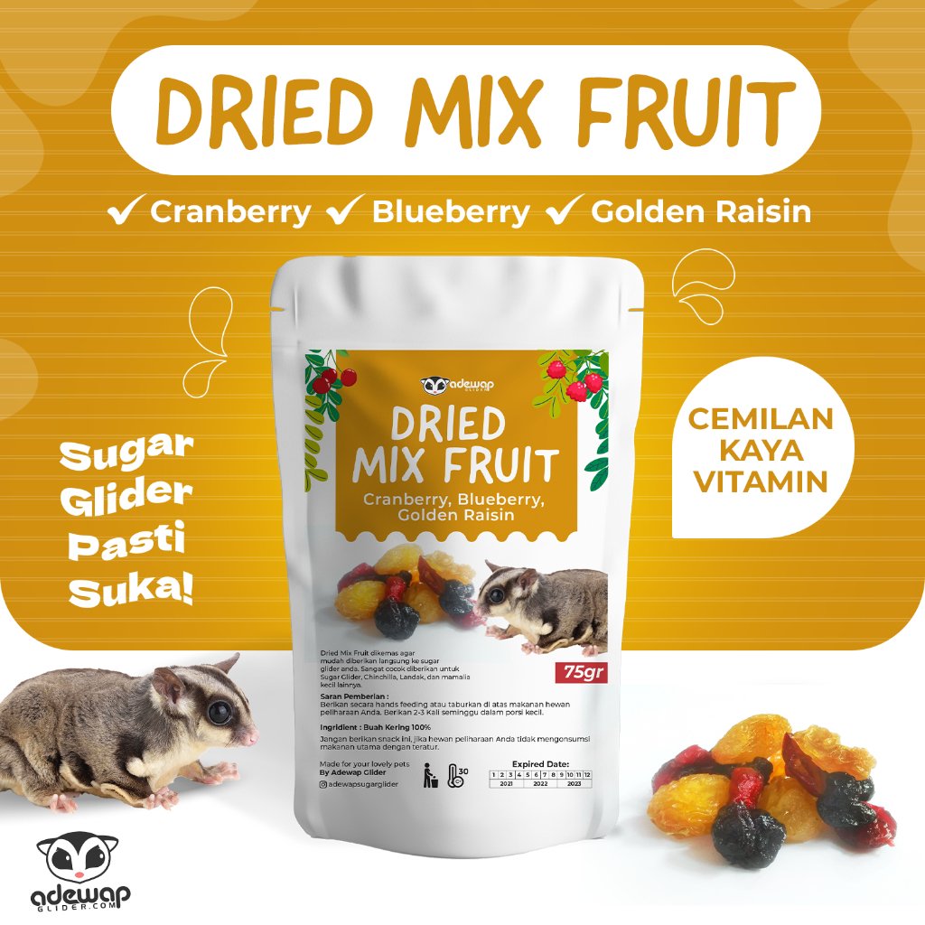 ADEWAP GLIDER Dried Mix Fruits Campuran 3 Buah Kering Cemilan Sugar Glider