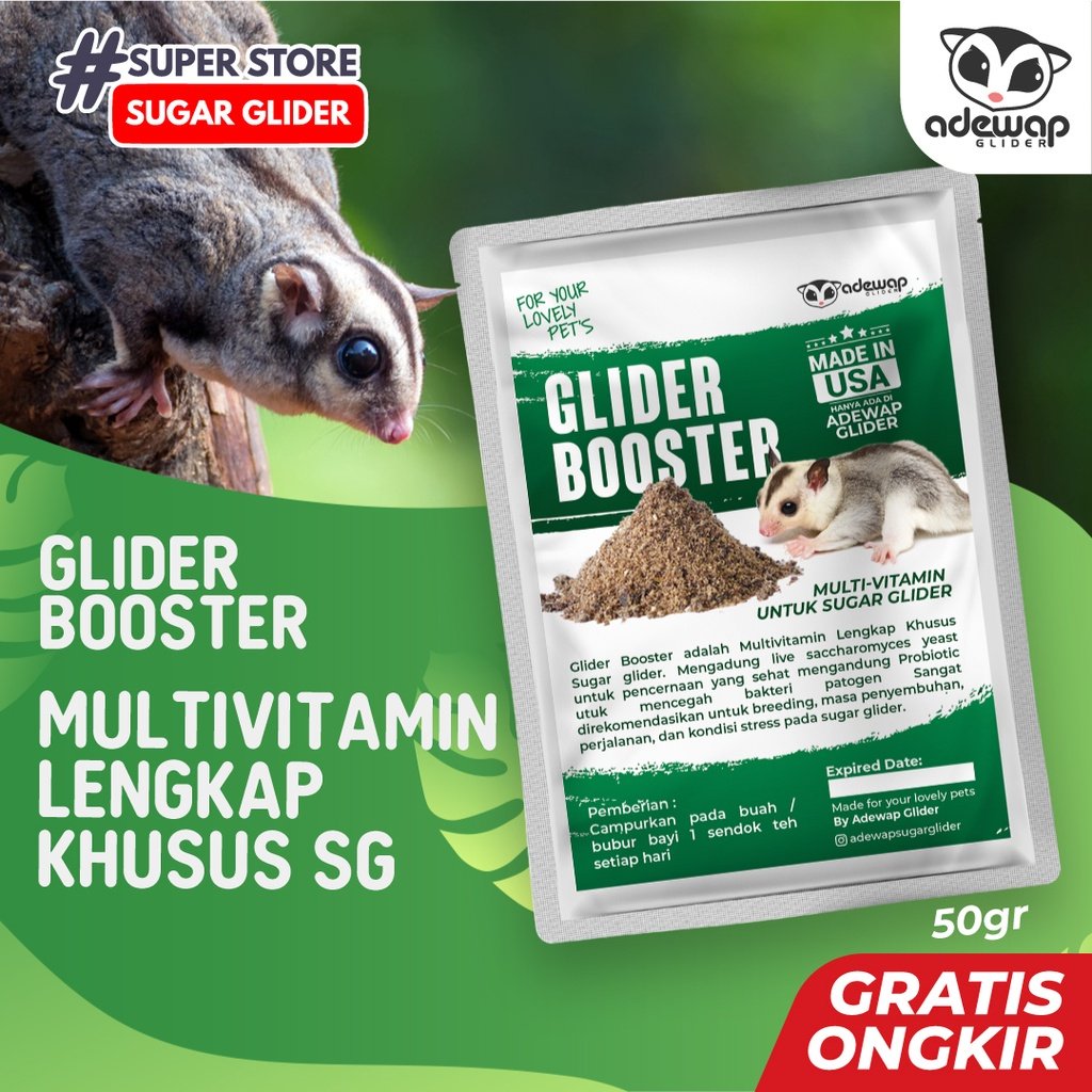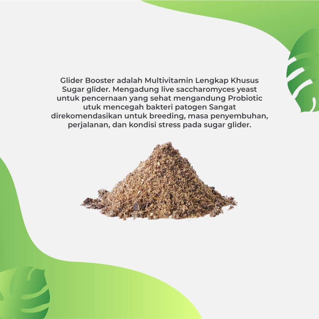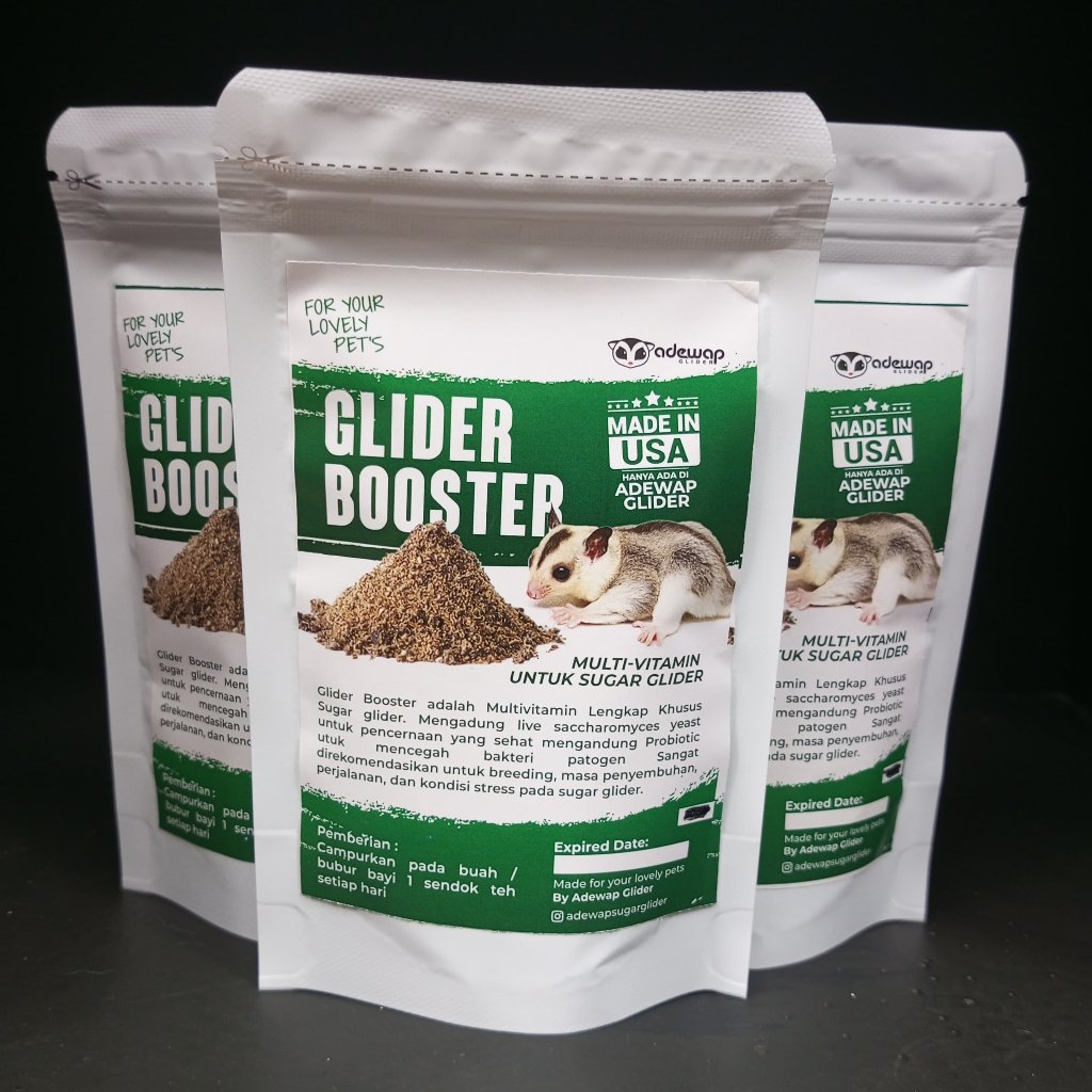 Bahan yang terkandung Di Glider Booster Menggunakan Bahan Alami tanpa Bahan Kimia, sehingga 100% Aman dikonsumsi oleh Sugar Glider
