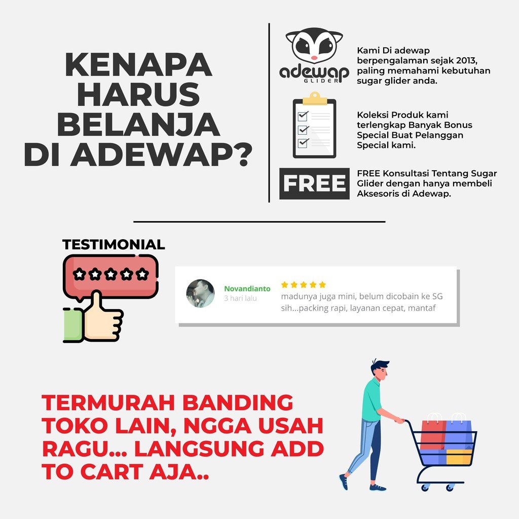 Merupakan madu Alami yang sehat untuk Hewan Pelirahaan. Madu memiliki banyak manfaat bagi Sugar Glider kesayanganmu. Selain sebagai sumber energi, madu juga dipercaya dapat meningkatkan kekebalan tubuh dan membantu proses penyembuhan.