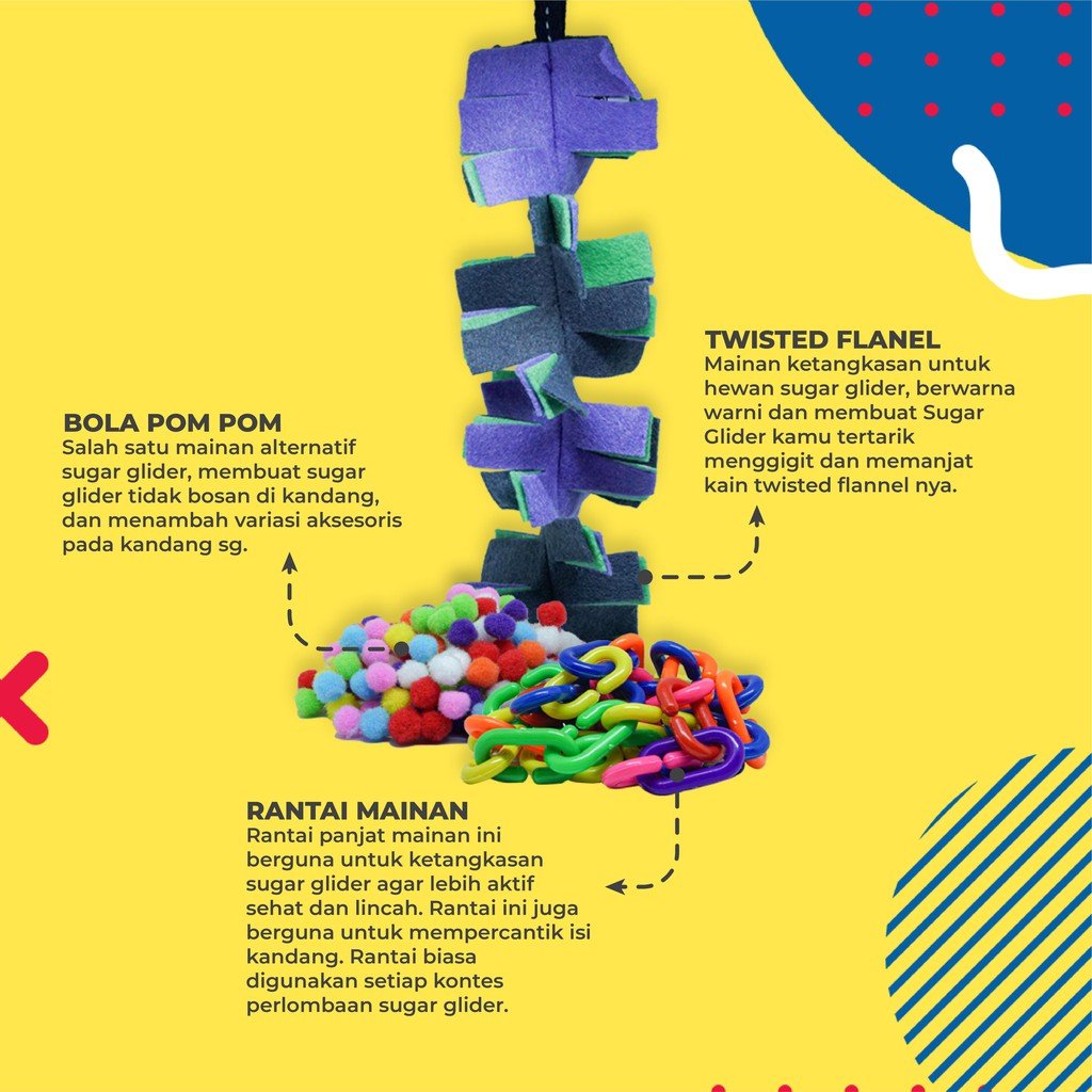 Berikan sugar glider mu kebahagiaan, supaya tidak bosan dan jenuh, tak hanya bermain Mainan ini dapat menstimulasi gerakan sugar glider di dalam kandang,
