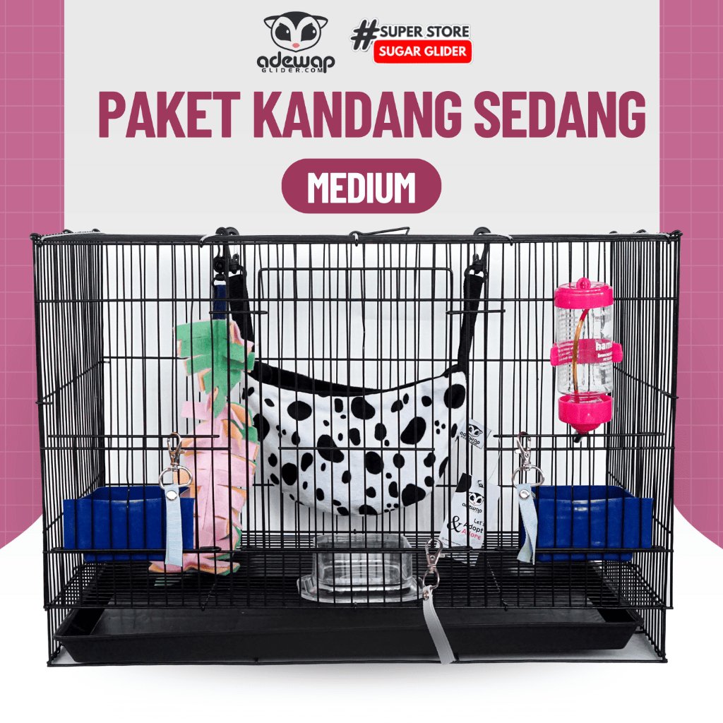 Paket hemat 8! Kandang medium perlengkapan pemeliharaan sugar glider komplit