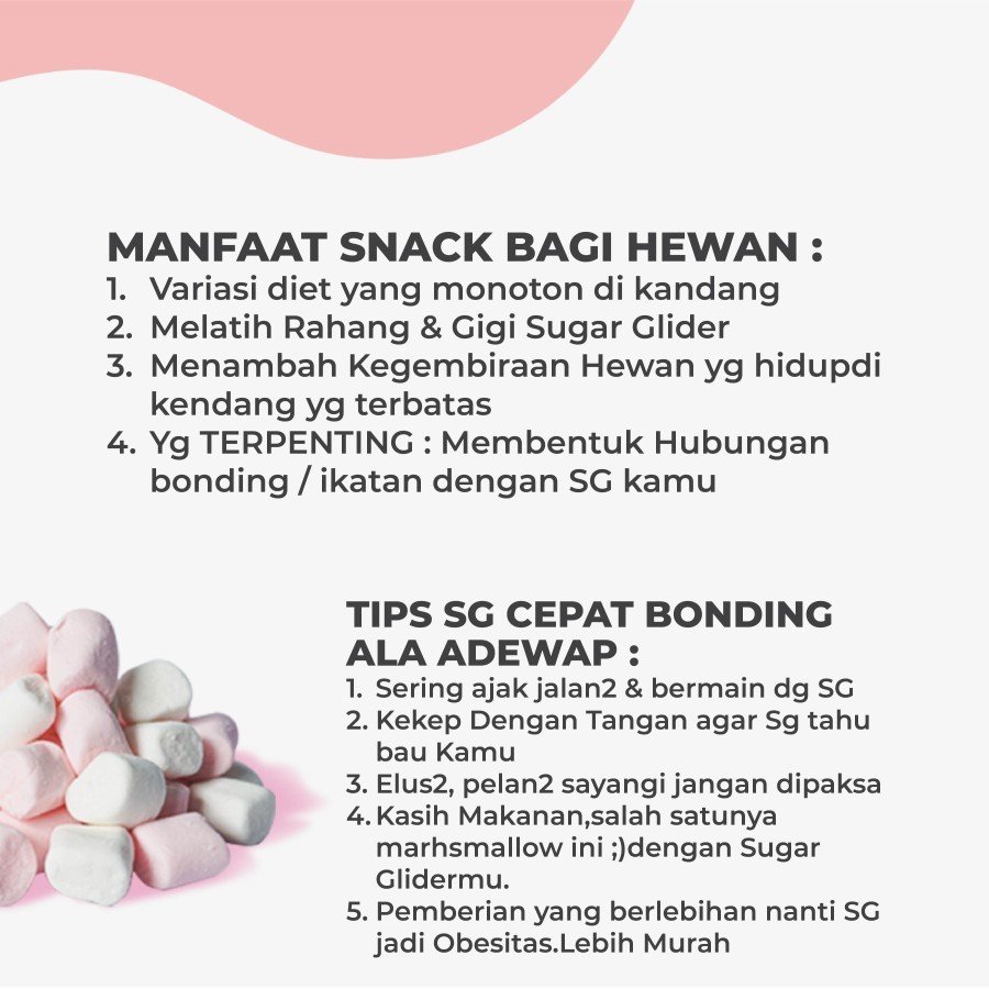 Marshmellow ini sama dg untuk manusia (human grade). SG sangat suka. Jadi g ada salahnya kita berikan ke sg untuk proses bonding kaya mimin.