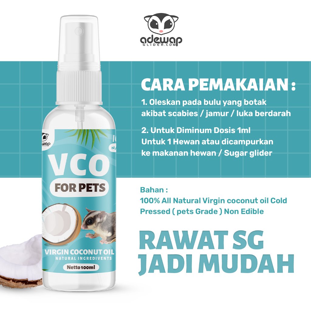 VCO berfungsi menjadi vitamin alami & obat organik untuk kucing , hamster , kelinci , sugar glider , dan hewan lain nya.