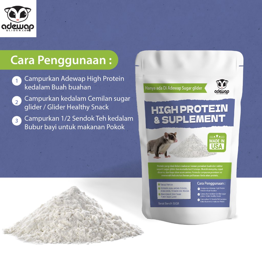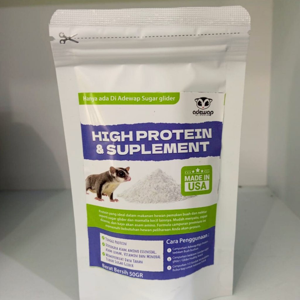 Suplemen protein simpel buat sugar glider dan mamalia kecil lainnya! Cepat larut, mudah dicerna, dan kaya asam amino. Formula premium ini bantu jaga otot hewan kesayangan tetap kuat.