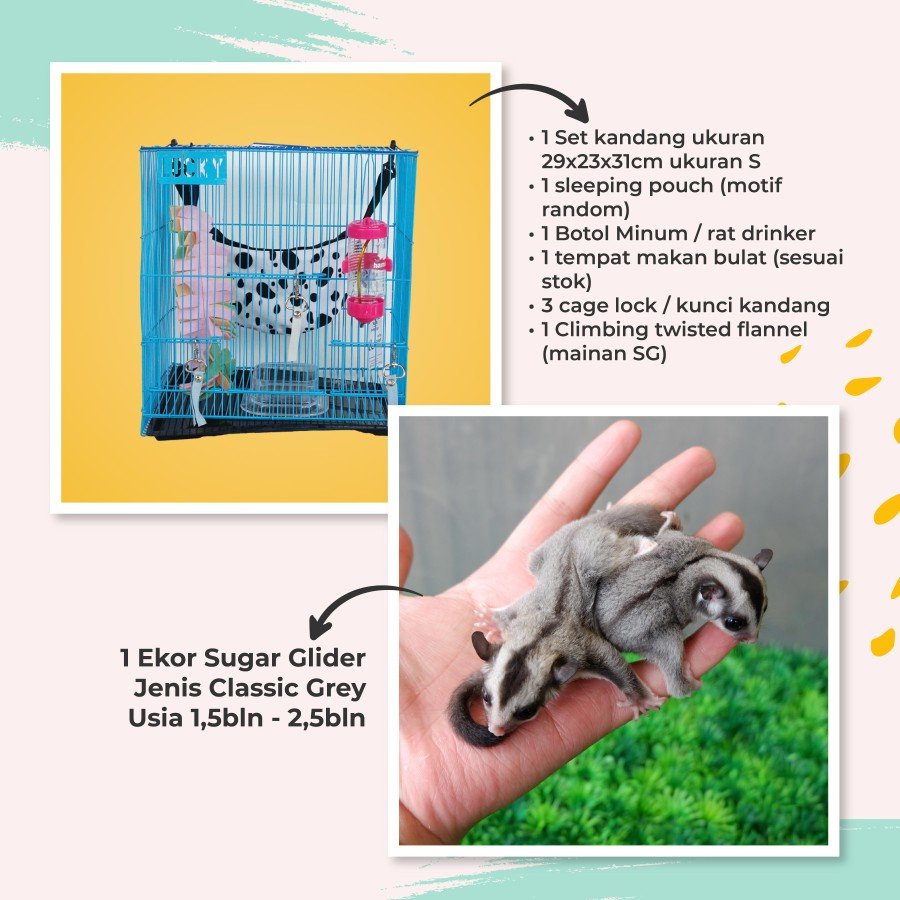 [Kurir Instant] Paket Pemula Pelihara Sugar Glider Classic Grey Joey Jinak Lucu + Kandang Full Set