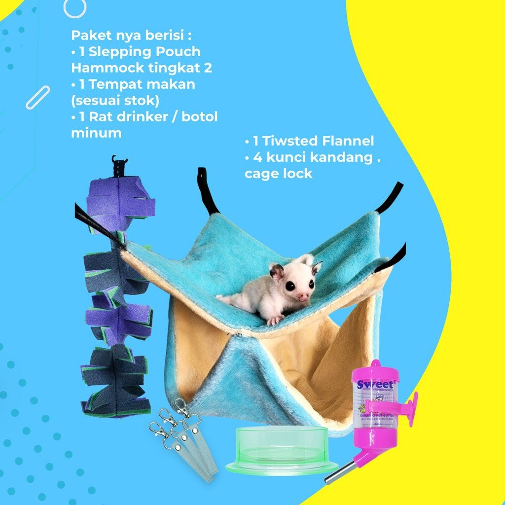 Paket Hemat 6 Perlengkapan Komplit Aksesoris Sleeping Pouch Hammock Tempat Tidur Kebutuhan Sugar Glider